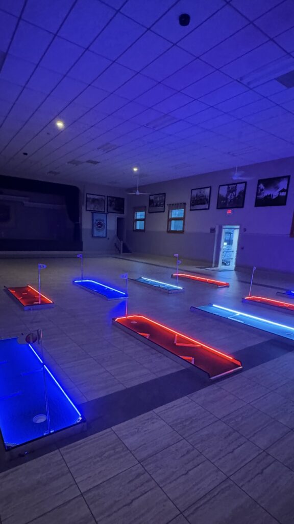 4HR. - 9-Hole LED Mini Golf Course – Weekday Rental $800Ideal For: Corporate events, school functions, private parties, team-building Description: Bring the fun to you with our portable 9-hole LED mini golf course! Perfect for weekday events, this setup features vibrant LED lighting, creative hole designs, and everything needed for a fully immersive mini golf experience. Great for daytime or evening events, we handle delivery, setup, and breakdown—so you can focus on fun.