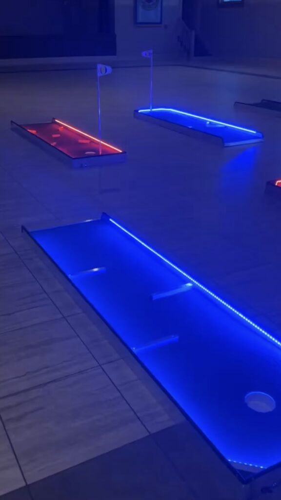 6HR. - 9-Hole LED Mini Golf Course – Special Event Rental $1,950Ideal For: Weddings, engagement parties, luxury private events Description: Make your big day unforgettable with our elegant 9-hole LED mini golf course designed specifically for weddings. With extended rental time, soft ambient lighting, and a sleek black-tie presentation, this unique entertainment option is perfect for keeping guests engaged between ceremony and reception or during cocktail hour. A sophisticated twist on interactive fun.